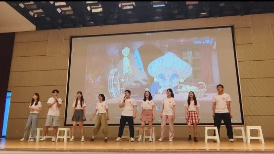 結課匯演上,我們為現場觀眾播放了自拍自導自演的情景劇,現場有不少家長潸然淚下,他們或是聯想到了自己的父母,或是關注到了自己的孩子。通過《小山的秘密》,我們不僅僅展現了留守兒童生活中的心酸時刻與困境,還給予了可行的解決途徑——多在線上和孩子交流學習生活方面的想法、積極同學校老師進行溝通、與相關社會組織聯動合作關照孩子的心理健康成長等,回扣了愛的三角倡導的“家、校、社”聯動的教育模式,贏得了社區工作人員及家長的好評。