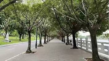 圖為潢涌江濱公園樹影婆娑的幽靜小道
