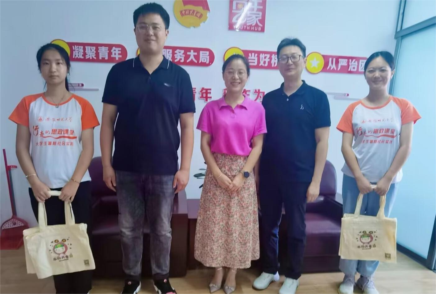 李雯書記也表示可以提供更多對接幫助,聯(lián)系進山車輛和住宿地點以及村干部等。期待“田田”團隊以及其他團隊能夠把太湖作為長期實踐調(diào)研的目標地區(qū),通過宣傳美麗鄉(xiāng)村吸引更多的游客,實現(xiàn)經(jīng)濟增長。最后,李雯書記贈送來訪四人印有“太湖共青團”標志的帆布包作為紀念,談話氛圍十分愉快,合影留念后,此次拜訪圓滿結束。