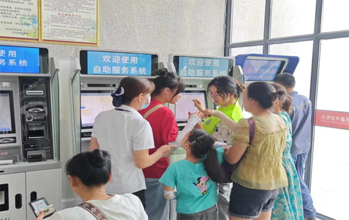(圖為實踐隊成員幫助病人家屬進行自主掛號)