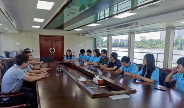 8月8日,在艇上會(huì)議室中,調(diào)研團(tuán)成員與港航事業(yè)發(fā)展相關(guān)中心的領(lǐng)導(dǎo)、校友進(jìn)行了一場(chǎng)精彩的座談。領(lǐng)導(dǎo)、校友們與實(shí)踐團(tuán)成員分享了當(dāng)下智慧水利的最新發(fā)展動(dòng)向以及自己的經(jīng)驗(yàn)與見解,并熱情介紹信息化建設(shè)時(shí)代所需的多學(xué)科交叉人才,為未來的發(fā)展尋找更多合作的機(jī)會(huì)。與會(huì)的校友們也帶來了豐富的行業(yè)經(jīng)驗(yàn)和獨(dú)到的思考,他們與調(diào)研團(tuán)成員分享了在港航管理領(lǐng)域的成長(zhǎng)歷程,鼓勵(lì)年輕一代的河海學(xué)子秉持創(chuàng)新精神,為水利事業(yè)注入新的活力。