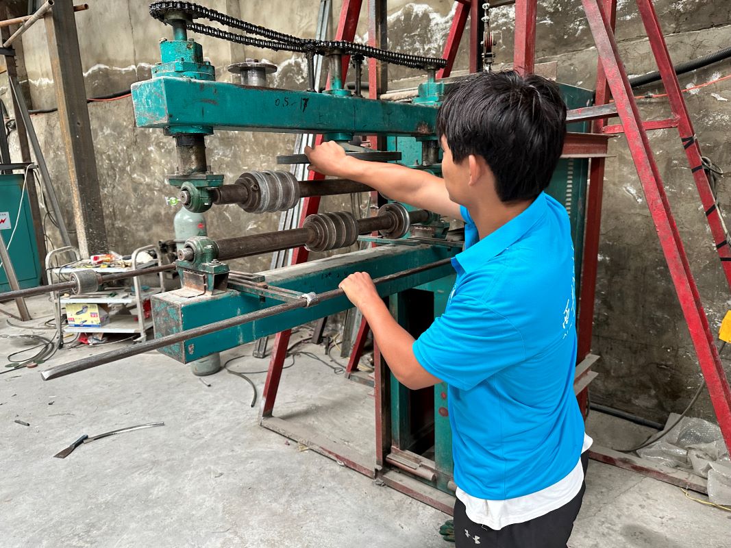 (圖為進行水箱板裁剪操作)