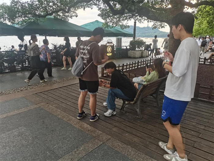 正式開展 7月14日,實踐小隊來到西湖景區,通過沿線走訪觀察,小隊成員對西湖一圈各處的水質、湖岸植被、空氣質量等進行觀測和細致了解。小組成員還與杭州西湖風景名勝區管委會工作人員取得聯系,經專業人士介紹,全面了解到當前西湖及周邊地區面臨的環境問題與挑戰,以及環保科技和綠色發展的最新動態,為今后的環境保護工作積累了寶貴的知識和經驗。