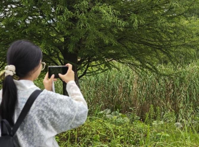 隊員首先來到植物分類系統(tǒng)園。分類系統(tǒng)園占地面積60000平方米,選擇種植了華東地區(qū)可露地生長的種子植物300多種,隊員們可以從這里了解植物分類和進化的活標本園,同時也在參觀過程中看到了連香樹,龍柏等植物。