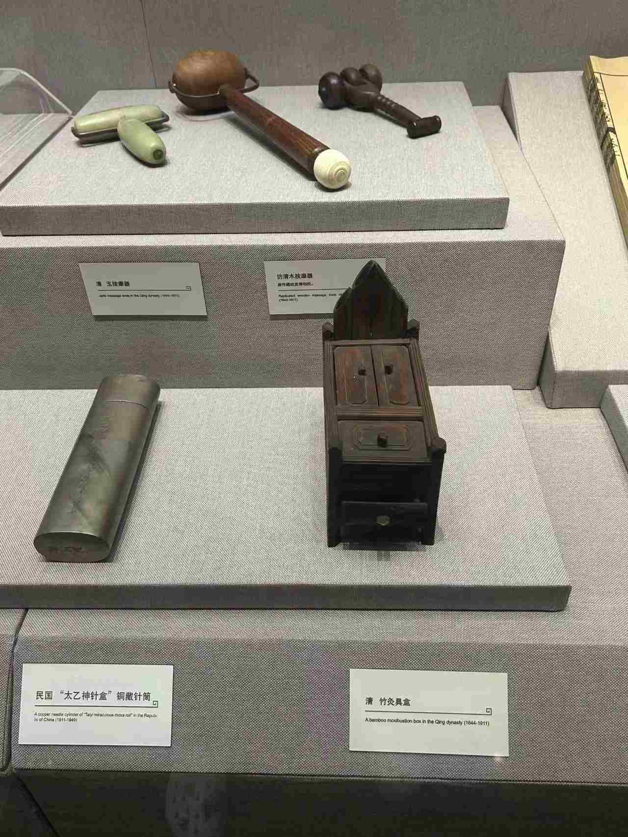 其余展品還有晉代醫家皇甫謐的《針灸甲乙經》、明代醫家楊繼洲的《針灸大成》等等。中醫文化館,主要展示的是中醫名家的書法、繪畫作品和歷代醫家的處方手跡,反映了中醫藥深厚的文化底蘊。位于二樓正中央的是康復養生館,展示了與日常生活有關的文物,古代的衛生環境,古代勞動人民日常保健的主要方法,這些對現代生活保健仍有深刻的啟迪。