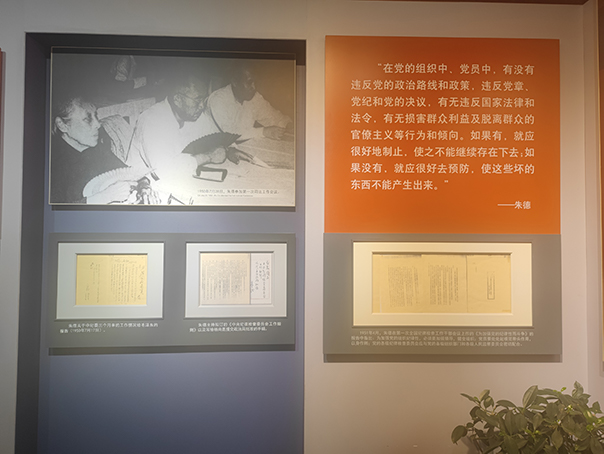 紀念館基本陳列從舊民主主義革命、新民主主義革命,貫穿到社會主義革命和社會主義建設幾個重要的歷史時期,將紀念館分為九個部分三十二個單元,提煉出“苦悶中的求索”、“紅軍總司令”、“黨的第一任紀委書記”、“人民的光榮”等九個主題,作為朱德一生的豐功偉績的概括。
