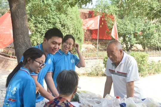 圖為小分隊隊員們正在與村民進行交流,做量表、談家常。山西太原支前小分隊 蓋藝心 攝