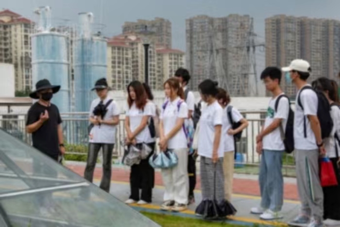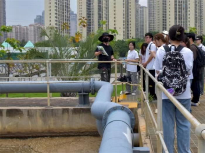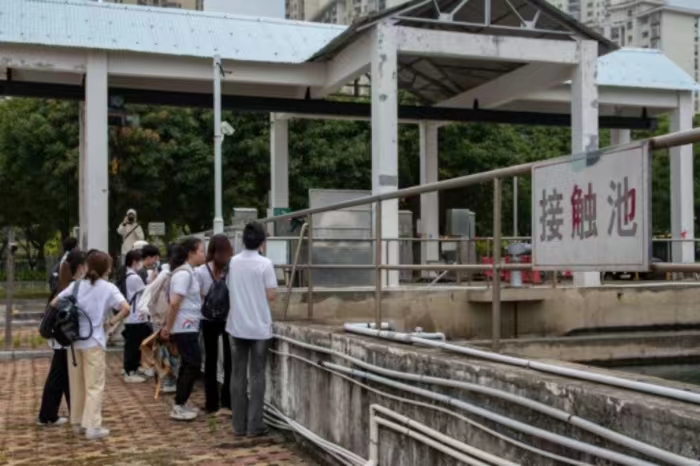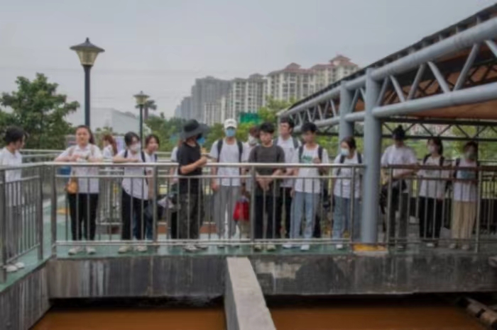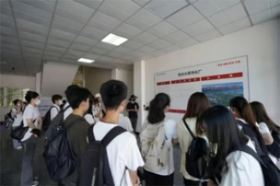 圖 工程師為實踐隊員介紹海滄水質凈化廠基本情況
