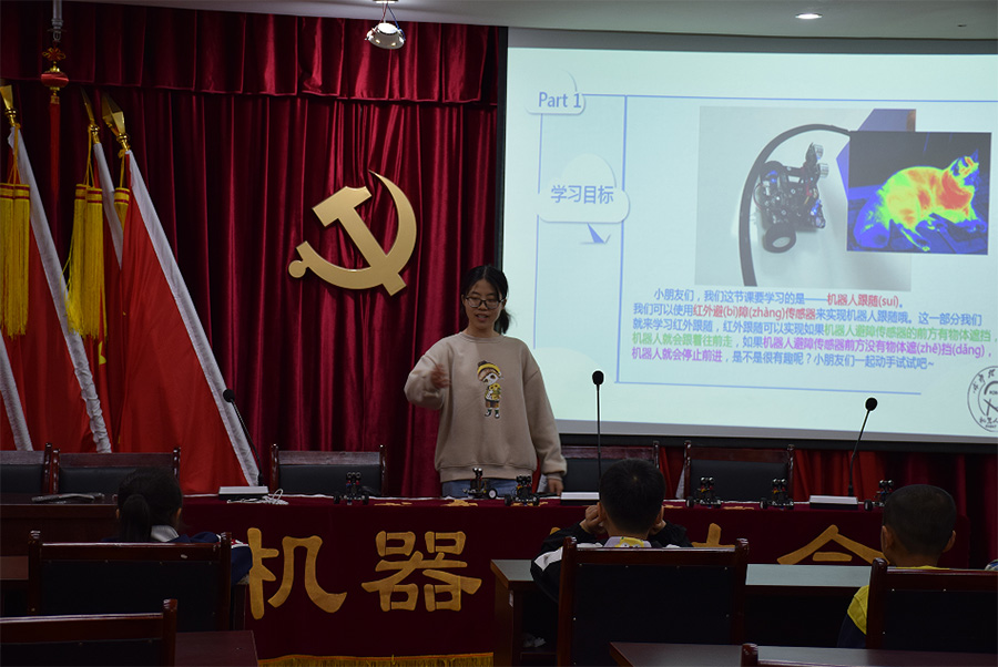 團(tuán)隊(duì)開展了少兒機(jī)器人科普教育,點(diǎn)燃孩子們心中的科技?jí)粝搿`l(xiāng)村里的孩子在教育資源上和城市有一定差距,鄉(xiāng)村振興和農(nóng)村現(xiàn)代化離不開鄉(xiāng)村教育發(fā)展。在鄉(xiāng)村教育的受眾對(duì)象中,孩子是重中之重。實(shí)踐隊(duì)員們向鄉(xiāng)村孩子們展示機(jī)器人產(chǎn)品、進(jìn)行機(jī)器人啟蒙教育,讓孩子們體驗(yàn)最簡(jiǎn)單的圖形化編程、基礎(chǔ)的幾種機(jī)械結(jié)構(gòu),以此來(lái)激發(fā)他們的學(xué)習(xí)興趣,開啟孩子們認(rèn)識(shí)和學(xué)習(xí)機(jī)器人的啟蒙之路,讓鄉(xiāng)村孩子們?cè)?ldquo;做中學(xué),玩中學(xué)”的理念下健康成長(zhǎng)。實(shí)踐隊(duì)員們希望通過(guò)這種方式在孩子們心中埋下科技的種子,并在不久的將來(lái)持續(xù)為鄉(xiāng)村振興貢獻(xiàn)力量。