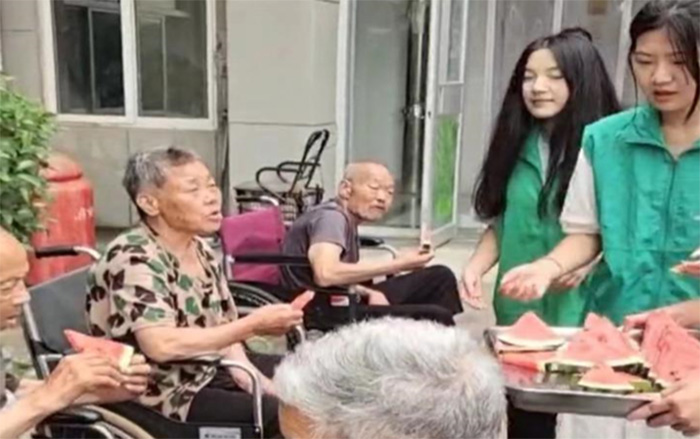 隨后,志愿者們為老人們準備了豐富多樣的水果,細心地為每位老人遞上一份清涼解暑的水果,滿足了他們對美味的向往。志愿者們陪伴著老人們,聆聽著他們的故事,分享著生活中的點滴,讓老人們感受到關愛與溫暖。