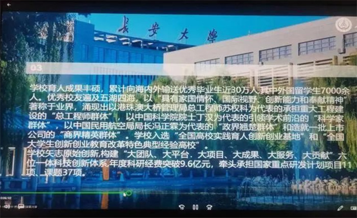 活動中,長安學子楊金鑫作為長安大學宣講人,從學校簡介、辦學實力、招生情況、校園環境、招生途徑五個方面向母校學子認真、簡明地進行介紹;宣講過程中,楊金鑫同學聲情并茂地講解了長大歷史、優勢學科、往年山西錄取分數線等關鍵模塊,結合圖文加以解釋;活動的最后,劉煜同學設置了答疑環節并向全體母校高三學子致以了最真誠的祝福和期盼。