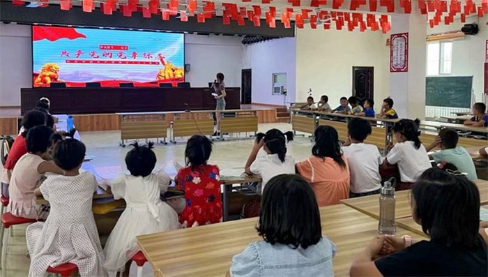 圖為“大愛吾疆”實踐團在阿克蘇地區庫車市玉奇吾斯塘鄉阿熱吾斯塘村開展以“中國共產黨的發展歷程”為主題的講堂