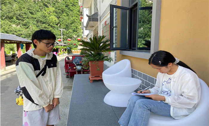 盡管天氣炎熱,路途遙遠,隊員們也沒有叫苦喊累,積極地與居民游客進行溝通,散發自己最大善意的同時,也在努力為康養旅游項目盡一份力量,隊長何靜表示:“作為青年大學生,保護生態我們應付諸行動,助力鄉村振興我們應付諸實踐,我們現在在做的,就是讓更多人了解康養旅游項目,走進鄉村。”