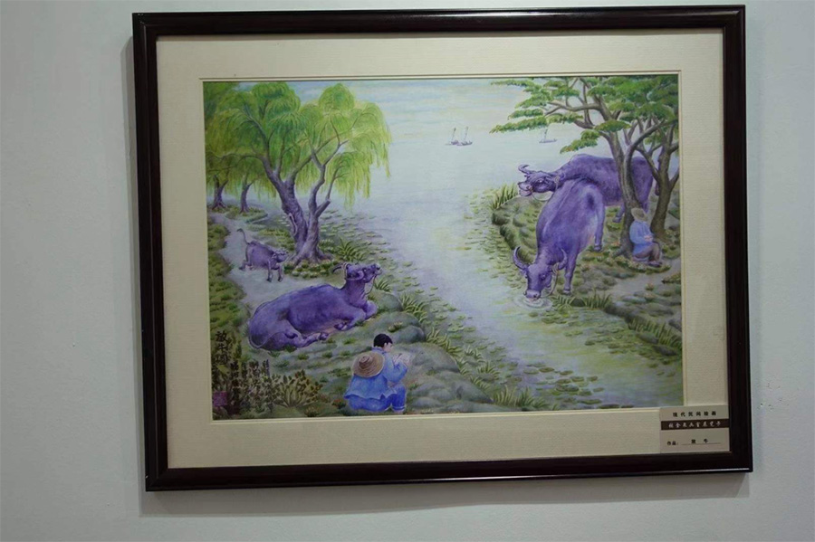 做了文書,工作并不繁忙,他可以有充足的時間畫畫。繆惠新喜歡畫畫,幼時讀書正趕上文革,那是個對知識要求并不多的時代,他把大部分的學習時間都交給了畫畫,但只是臨摹。或許命運之神還沒有看到他,高中畢業之后,他曾三次報考美術類院校,都以失敗告終。文書繆惠新自然十分珍惜畫畫的機會。1987年,他再次在省農民畫比賽中獲得一等獎。他的畫引起業界的注意。