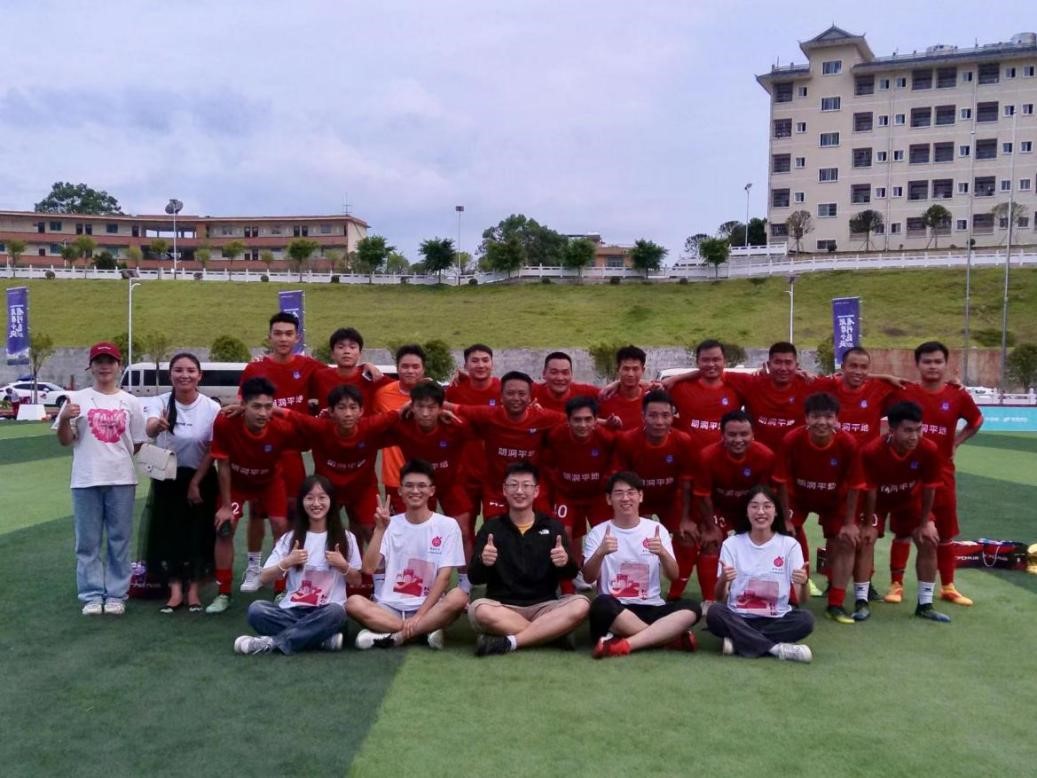圖為朗洞平地村足球隊在榕江中等職業學校表演賽合影