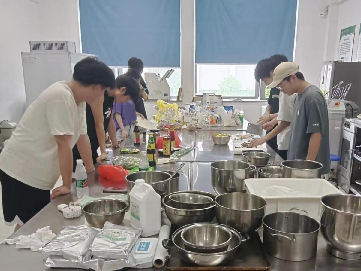 在中國計量大學生命科學學院張擁軍教授和賈振寶副教授的悉心指導下,團隊成員集思廣益,經過了數輪推敲討論、制作試味后,設計出了響鈴菌菇卷、菌菇淀粉腸、冰皮菌菇菓、菌菇果凍以及黑米菌菇粥等一系列以菌菇為主體的預制菜產品,并在出發前一天精心制作好了產品樣品帶到了會議現場。
