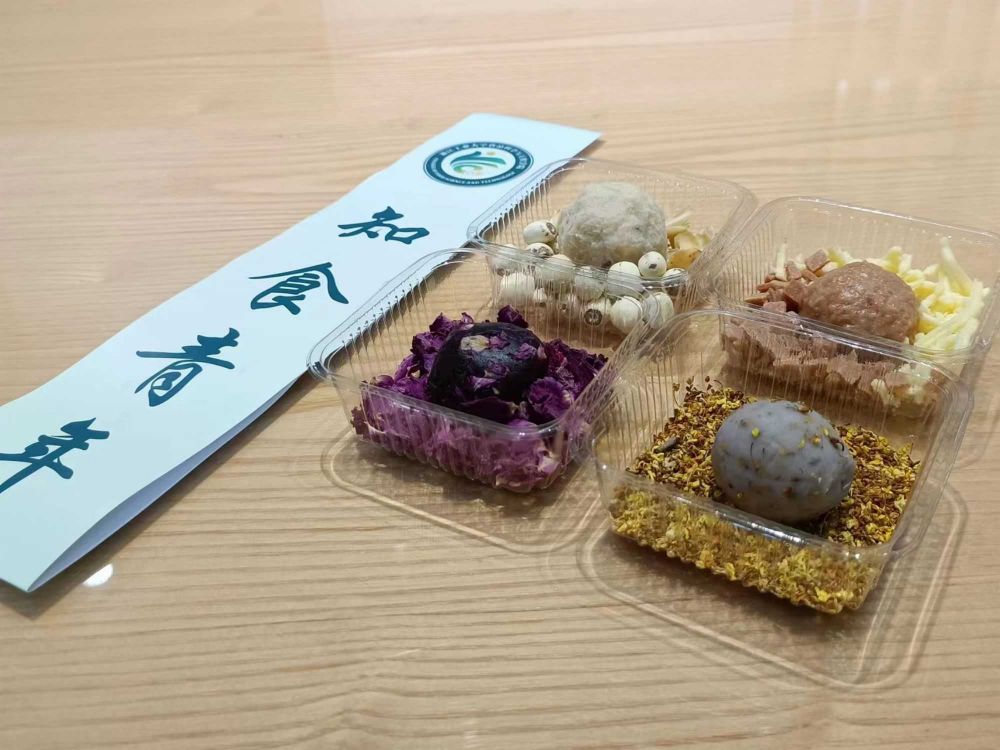 通過對新市茶糕的尋訪,實踐隊最終決定將四季元素融入茶糕中,豐富茶糕的文化內(nèi)涵與形式表達(dá),于莫干山校區(qū)食品樓實驗室進(jìn)行茶糕的改良工作,經(jīng)歷多次試驗,最終呈現(xiàn)效果良好,并在包裝上創(chuàng)新獨家腰封,賦予小隊特色。