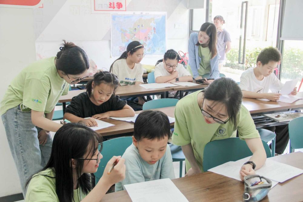 實踐隊員手把手指導(dǎo)小演員臺詞及表演