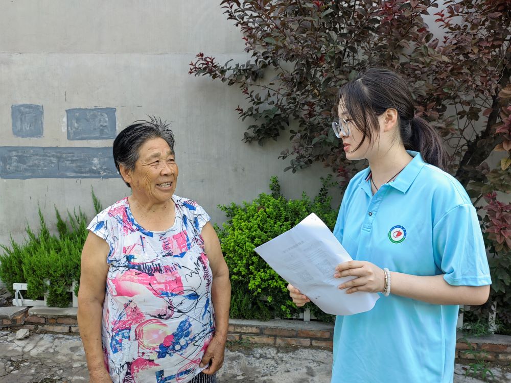圖為實(shí)踐隊(duì)員采訪石匣村內(nèi)老人