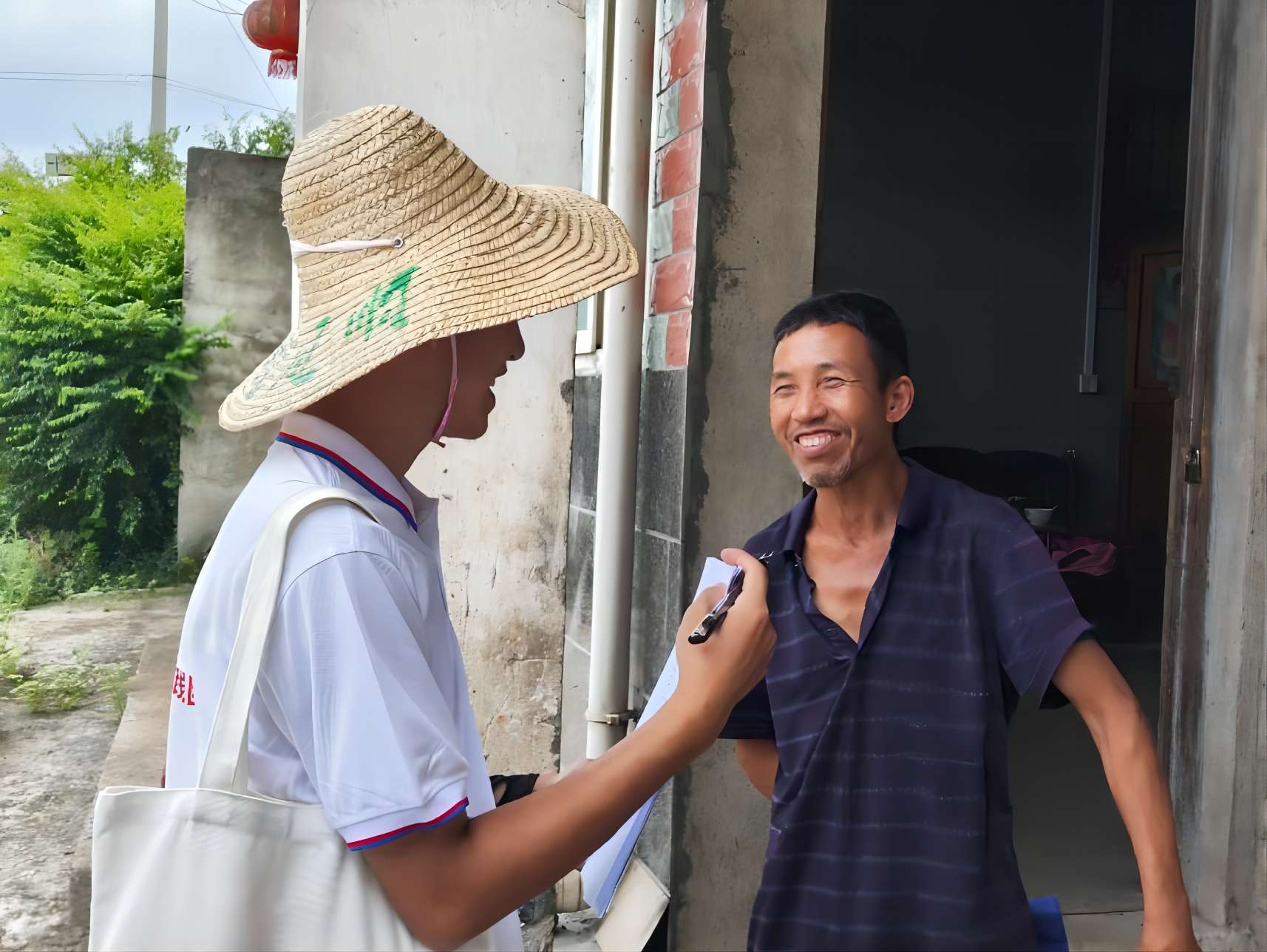 圖為實(shí)踐團(tuán)隊(duì)隊(duì)員在向村民進(jìn)行問卷調(diào)研。中青網(wǎng)通訊員 甘杰 攝