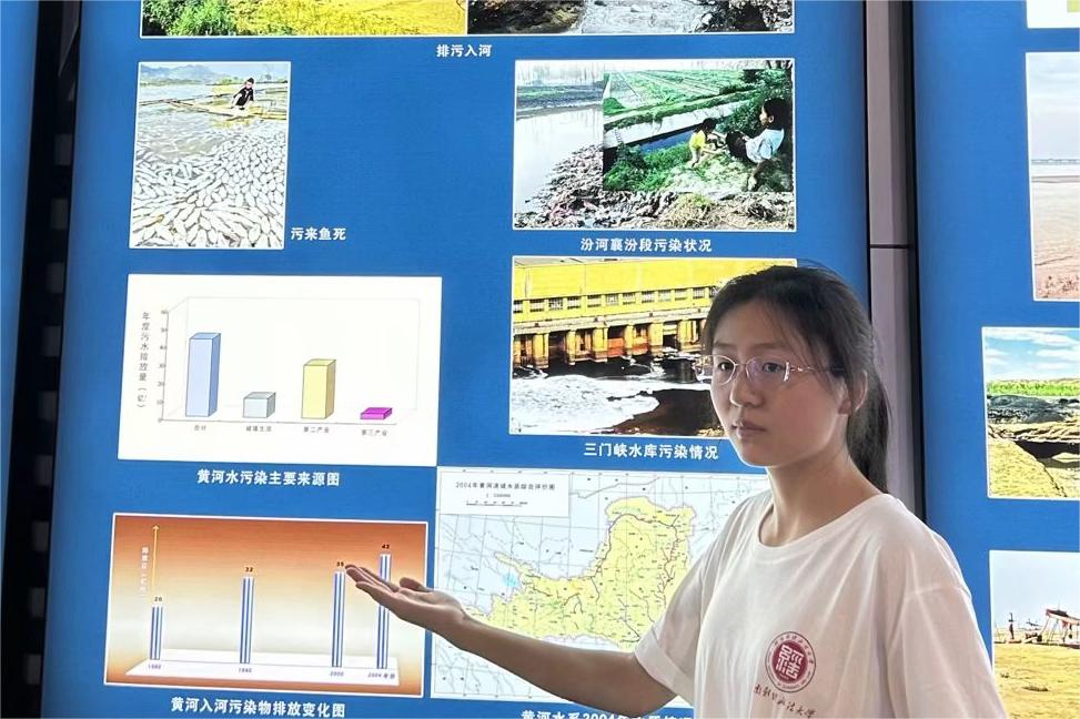 實(shí)踐團(tuán)組員在做好充分的準(zhǔn)備后,以“守黃河安瀾,護(hù)綠水青山”為題,以提高保護(hù)黃河生態(tài)環(huán)境意識為旨,向參館游客進(jìn)行黃河知識宣講。