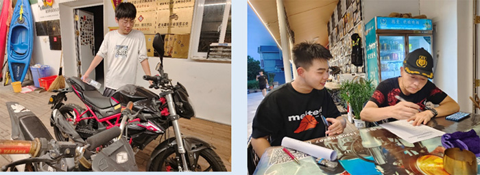 除此之外,實踐團來到團石村的摩巡驛站,感受到極具特色的摩旅文化。“狼哥辛苦了,坐下休息會。”實踐團趕到時剛好聽到摩友們這樣稱呼摩巡驛站創始人王敏,當地新鄉賢王敏說,每天接待的摩友有80人次。通過團隊成員與“狼哥”的交流,了解到兩年前他和同伴扎根于此,如今摩巡驛站已經陸續吸引了7萬多名“摩友”。作為騎行愛好者聚集地,摩巡驛站準備了騎行體驗活動,游客可以選擇駕馭、摩托車、電動車或自行車,感受騎行的快樂與自由。文旅融合,培育鄉村發展新業態,機車驛站、水上運動中心等項目的引進,直接帶動了團石農家樂、民宿的蓬勃興起,把流量變現的還有“夜經濟”,團石旅游如火如荼,鄉村夜景和產業形態已初步形成。