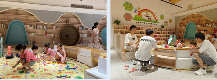為體驗村民豐富的精神文化生活,實踐團成員們參觀了團石村與鄉村賢會共同建設的村圖書館,這座免費對外開放的村圖書館,為村民提供一個全新的娛樂場所。館內裝修溫馨,內有眾多書籍,主要由兒童讀物、《團石村村志》等組成,還配備有兒童娛樂場所,書架上擺放著各類文創作品,獨具風格特色。圖書館中有很多孩子在玩耍、閱讀,長輩在一旁或陪伴,或閱讀書籍。滿足村民日益增長的精神文化需求也是團石村建設的重點。實踐團成員們發現,團石村文化禮堂、新時代文明實踐站、未來生活館等活動陣地匹配齊全,為了豐富村民的生活,團石村還經常舉行文化節、音樂節等等活動,日漸完備的娛樂休閑設施、文化配套設施、豐富多樣的文體活動,給美麗鄉村建設增添了一抹動人的色彩。