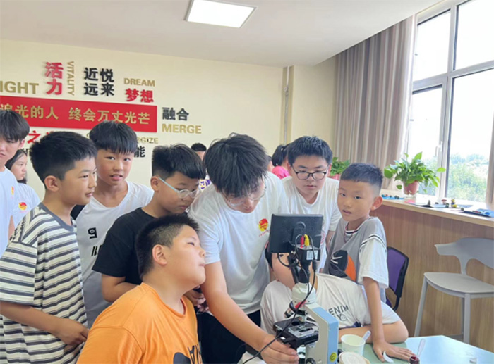 科學小實驗可以讓同學們在實踐中掌握知識,增強學習興趣和自信心。志愿者演示了洋蔥鱗片葉內表皮臨時裝片的制作,同時帶領同學們學習并使用電子顯微鏡對制作的洋蔥鱗片葉內表皮玻片進行觀察。同學們全都聚精會神地聽著志愿者的講解,認真完成了實驗,成功在顯微鏡下觀察到了植物細胞的結構。