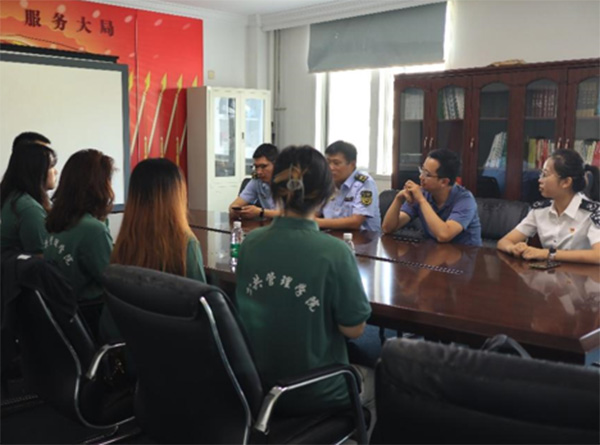 首先,空港環(huán)境監(jiān)測(cè)站的主要責(zé)任人員以會(huì)議形式對(duì)實(shí)踐團(tuán)師生進(jìn)行歡迎與講解。執(zhí)法大隊(duì)隊(duì)長(zhǎng)在會(huì)上介紹了監(jiān)測(cè)站的組織結(jié)構(gòu)與工作職責(zé),并與實(shí)踐團(tuán)師生交流有關(guān)空港經(jīng)濟(jì)區(qū)在天津發(fā)展的宏觀層面重要戰(zhàn)略意義;監(jiān)測(cè)站的技術(shù)人員為實(shí)踐團(tuán)成員進(jìn)行工作方向、數(shù)據(jù)評(píng)估等技術(shù)層面的講解與答疑。