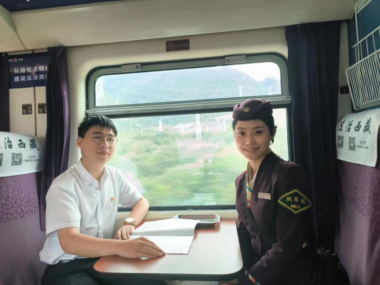 專訪車長獲贈書在這“天路”上的奔波曲折,團隊隊長李遠宏專訪本列次的列車長,兩者進行親切友好的交談。兩人就青藏線的發(fā)展歷程、新時期以來的西藏大發(fā)展及青藏線未來的發(fā)展和即將建成的川藏鐵路等方面的問題做了大量探討。列車長向李遠宏介紹,“西藏目前基本形成以公路、鐵路、航空為主體的綜合立體交通網(wǎng)絡,天上的‘路’和地上‘天路’,讓世界屋脊——青藏高原也不再遙遠封閉,也加速了經(jīng)濟社會發(fā)展的發(fā)展。除此之外,醫(yī)療水平、住房條件和人居環(huán)境都得到了改善與提高,文化產(chǎn)業(yè)也蒸蒸日上,人民生活幸福......”。兩人還就7月1日復興號動車組列車正式駛上青藏線西格段這一重大新聞做了交流,兩人均認為“復興號”駛上青藏高原是能夠推進新時代新西藏現(xiàn)代化建設的一大喜事。專訪結束后,列車長將最新一期的《新西藏》書刊贈予李遠宏。