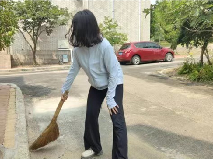 此外,實踐團成員還對社區內的公共區域進行了全面的清理打掃,他們準備了各種掃帚、鏟子等清潔工具,對社區的道路進行清掃,掃除掉了路面的落葉、塵土和雜物,讓社區變得更加干凈整潔。為社區的環境美化貢獻了自己的一份力量。