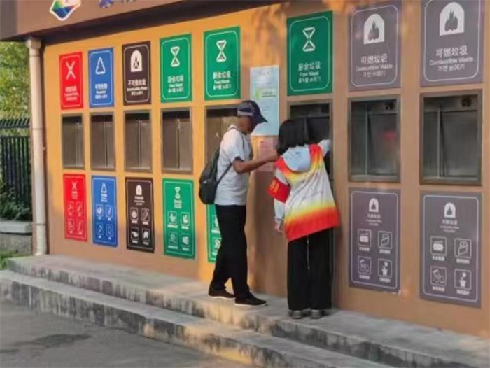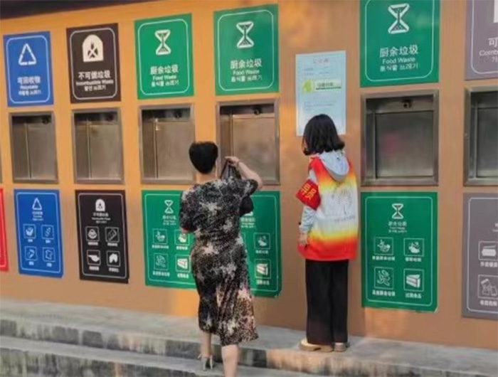 指導社區居民正確將垃圾投放到相應垃圾桶內
