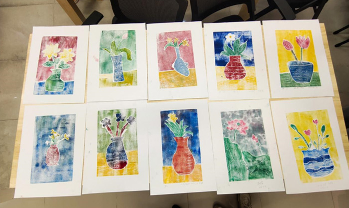 圖為孩子們印制完成的版畫作品。(多彩大學生網通訊員 米雅煊 攝)