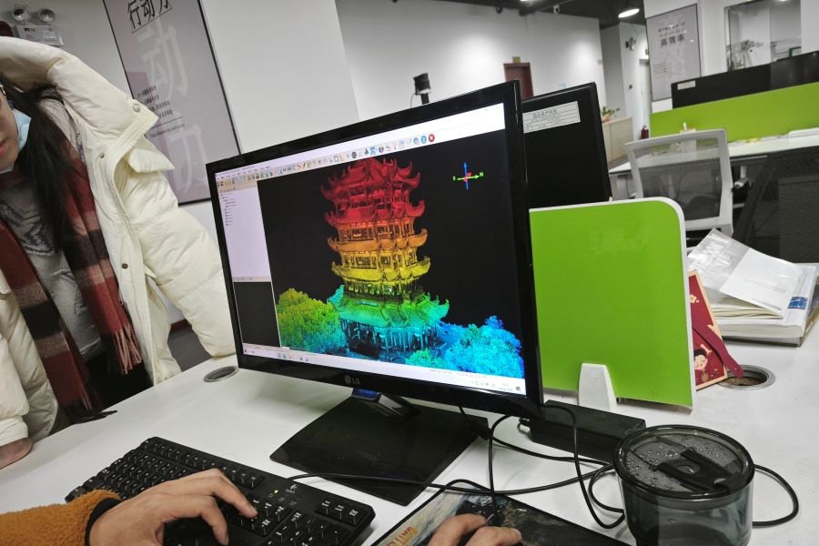 在武漢際上導航科技有限公司,公司副總經(jīng)理劉杰先生給GIS協(xié)會的同學們介紹了該公司無人機激光雷達、手持激光雷達的研發(fā)與市場應用情況。在講解完理論之后,公司技術骨干和同學們來到公司樓下,以天頤科技園為地理空間數(shù)據(jù)的采集對象,現(xiàn)場演示了最新研發(fā)的專業(yè)設備采集地理空間數(shù)據(jù)的方法與過程。在這個過程中,學生學習了解了無人機的飛控知識與激光雷達的優(yōu)勢。