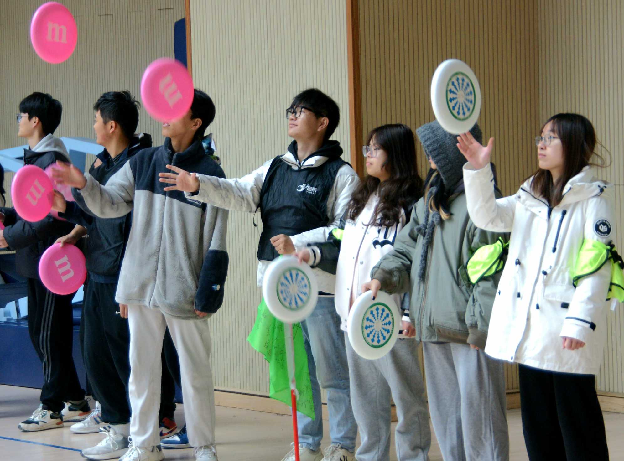 活動伊始,主持人首先帶領同學們進行了熱身游戲。在輕松愉快的音樂聲中,同學們分成若干小組,通過互動游戲的方式逐漸進入狀態。熱身環節不僅調動了現場氣氛,還增強了同學們的參與熱情。接下來是看圖猜數字環節。主持人在特定的圓圈內放置多張圖片,解讀圖片中的線索,猜出正確的數字。在這個環節中,同學們充分發揮了各自的觀察力和想象力,不少小組在短時間內就找到了答案,贏得了寶貴的比賽分數。最后是飛盤游戲環節。在這個環節中,同學們需要用飛盤淘汰對手隊伍的代表。這個環節不僅考驗了同學們的投擲和接住技巧,還需要良好的團隊協作。經過幾輪激烈的角逐,最終獲勝的小組展現出了過人的團隊默契和出色的策略規劃能力。最后由主持人組織合照拍攝,本次活動圓滿結束。