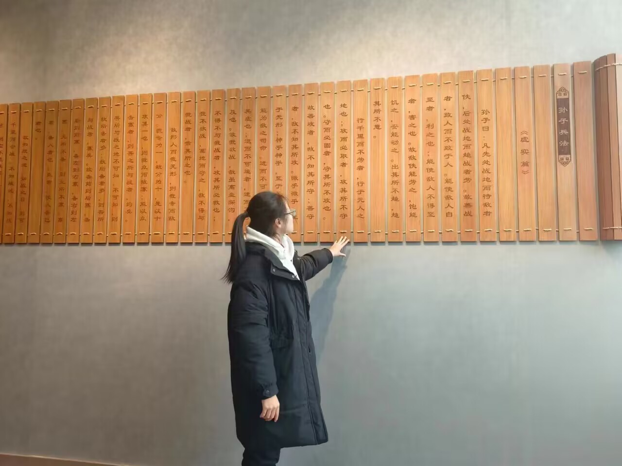 在此之后,調(diào)研團(tuán)成員來到展廳轉(zhuǎn)角,在這里,紀(jì)念館以竹簡的形式呈現(xiàn)出當(dāng)年戰(zhàn)役所采取的戰(zhàn)術(shù)策略。在當(dāng)年競爭激烈的環(huán)境中,參戰(zhàn)英雄正是運(yùn)用有效的策略,脫穎而出,不僅提高了連隊(duì)的生產(chǎn)效率和生產(chǎn)力,更為組織提供了作戰(zhàn)勝利的優(yōu)勢,值得后世加以借鑒學(xué)習(xí)。