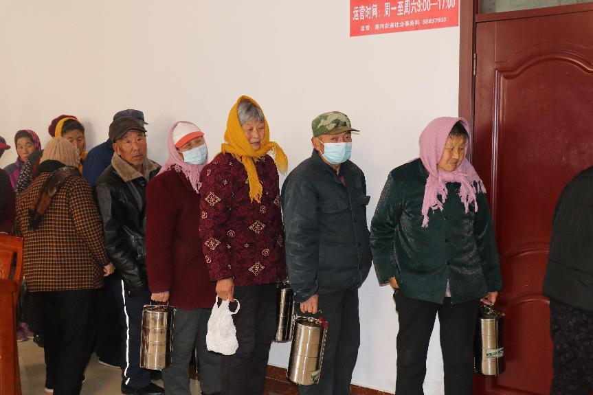 中午時分,老人們陸續來到中心餐廳免費領取午飯,實踐隊員配合工作人員分配飯菜,餐廳里飯菜飄香、歡聲笑語。