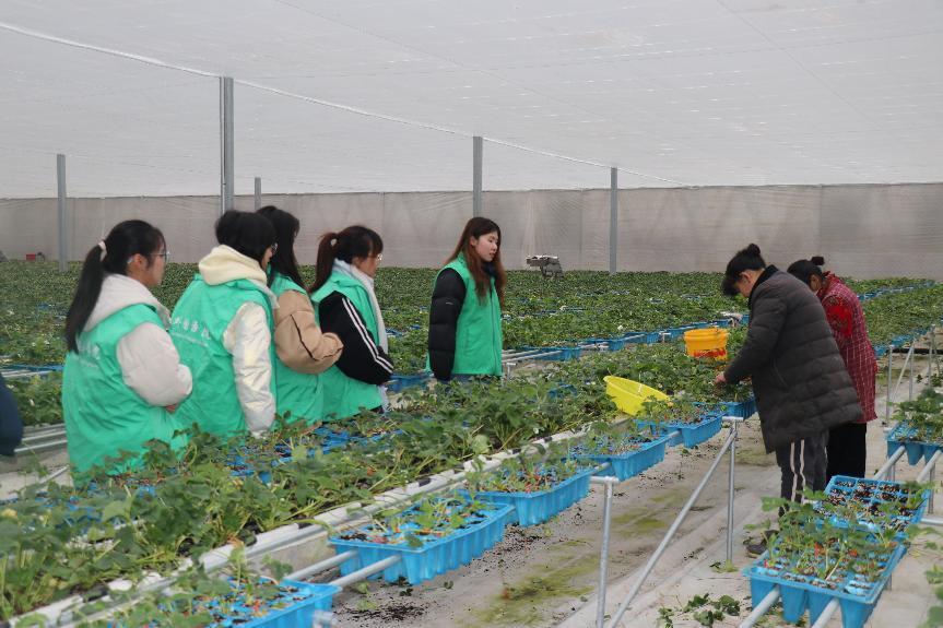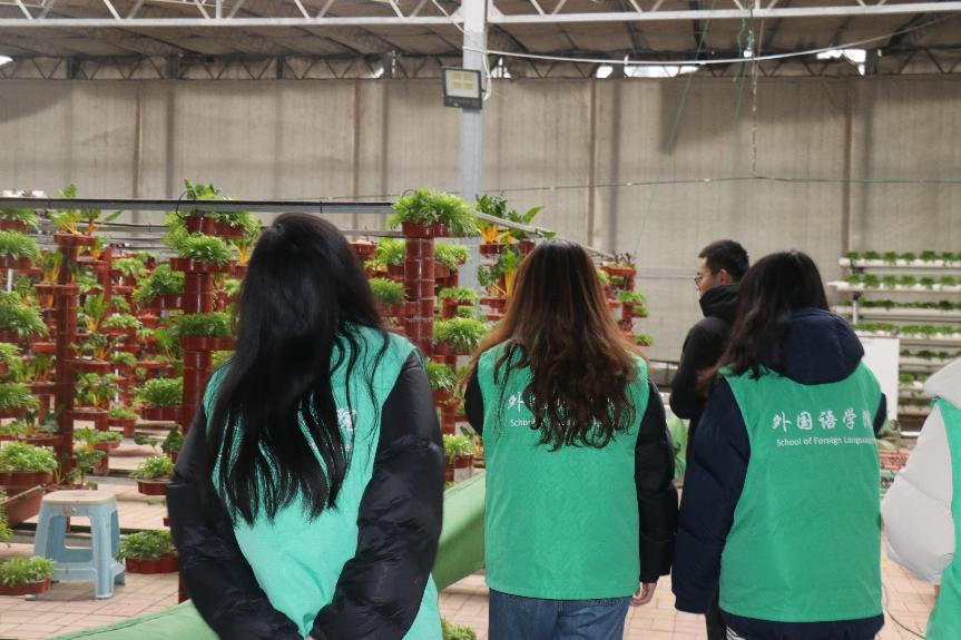 實踐隊員還前往蘆南村智慧農業大棚,體驗集農業科技示范、科普宣傳、休閑采摘、果蔬生產等為一體的現代農業示范項目,了解科技興農新舉措,同時收集一線工作人員對于鄉村振興的想法和感受,并結合外國語學院專業優勢,提供電商助農等有關想法。