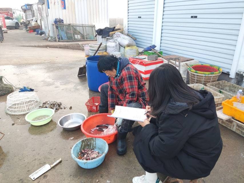 1月12日至13日,實踐隊走進山海天景區(qū)、張家臺碼頭進行實地調研考察。本次調研主要采用線上線下分發(fā)調查問卷與線下訪談的形式進行,緊緊抓住日照市作為沿海城市所具有的較為特殊的飲食結構——水產品飲食(水產品包括淡水和海水),去到保利廣場等地深入消費群體,去到張家臺碼頭等地深入市場供給,全方位、多層次進行日照市居民藍色食物調研活動。利用所在地區(qū)優(yōu)勢,采用從日照看沿海、從部分到整體的方法開啟了實踐之路。