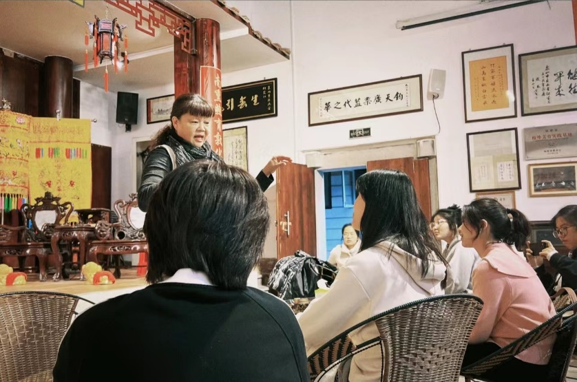 “琵琶弦索吟不盡,一聲拍板幾聲蕭。”泉州南音研究社成員向實踐隊詳細講解了南音悠久的歷史文化,展示了由琵琶、三弦、洞簫、二弦四件構成的“上四管”這一常見的南音樂器組合,并邀請實踐隊隊員近距離感受與體驗,弦管裊裊,古韻悠悠。