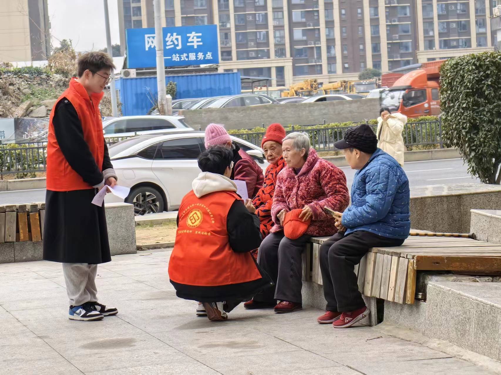 活動過程中,團隊成員去到社區的健身場所、休息長椅、餐廳等,為老人們講述各種詐騙案例和應對策略,引導他們注冊防詐軟件小程序。