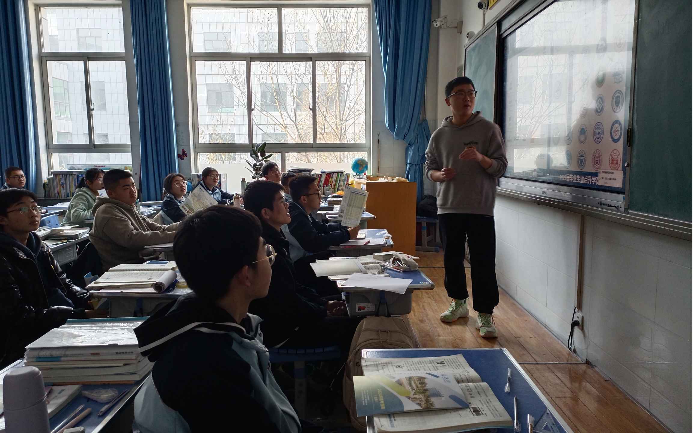 (實(shí)踐隊(duì)員為高三同學(xué)播放招生視頻)