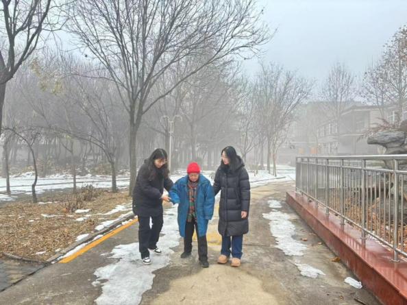 逐漸步入老年的他們,身體逐漸虛弱,但是他們的鍛煉之心仍在。實踐團成員幫助想要鍛煉身體、呼吸新鮮空氣的老年人進行室外活動,全程陪同看護和交流慰問,不但保證老人的安全,還增進了彼此之間的感情。