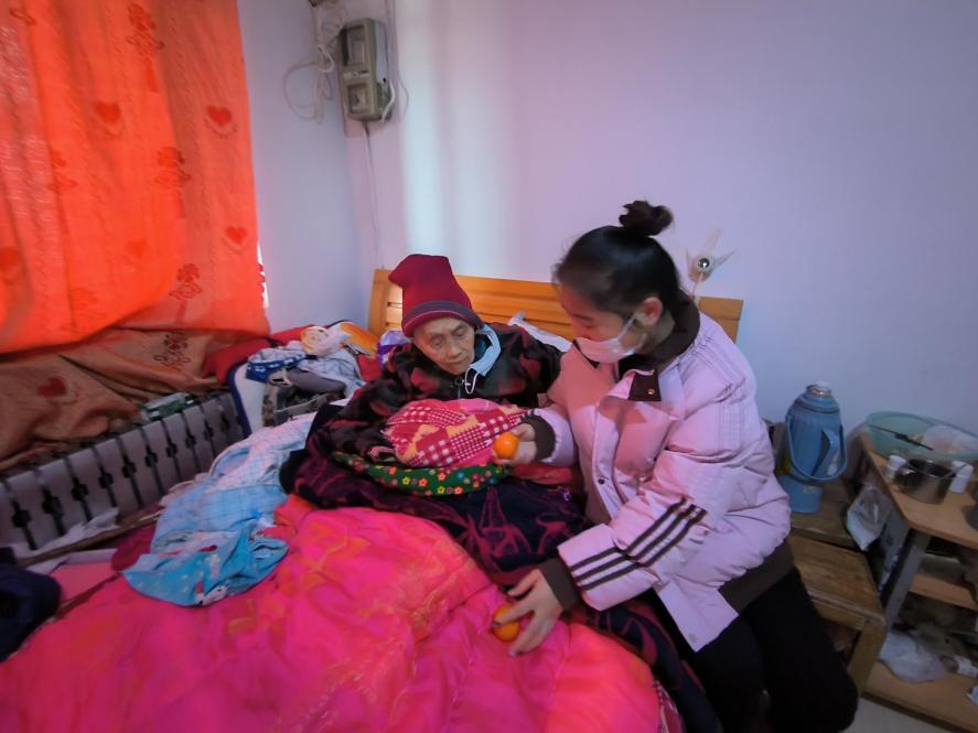 實踐團成員發放慰問品的時候,老人們的臉上洋溢著幸?鞓返谋砬。此時,實踐團的個別成員注意到老人的窘迫,由于老人行動不便,實踐團的成員將慰問品剝皮送到臥床的老人嘴邊,方便老人進食。這些微不足道的舉動無時無刻的彰顯著此次社會實踐活動的主題,關注并幫助身邊孤獨的老人體會溫暖與關愛。