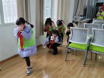 而后老師對(duì)小朋友進(jìn)行分組并帶領(lǐng)著小朋友們向少年先鋒隊(duì)隊(duì)旗宣誓,班中小朋友無(wú)不激蕩澎湃,班長(zhǎng)與副班長(zhǎng)為全體同學(xué)演示了如何系紅領(lǐng)巾,小朋友們?cè)谂_(tái)下認(rèn)真學(xué)習(xí)。