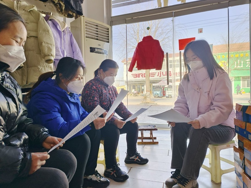 圖為社會實踐隊員向當地農戶分發有關新型職業農民的調查問卷,在交流中大家紛紛展現出自己對于村中農業進一步發展的期待。