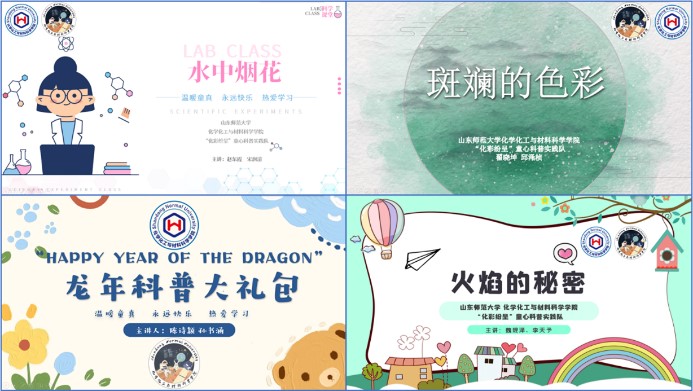 ——山東師范大學化學化工與材料科學學院“化彩紛呈”童心科普實踐隊開展活動 習近平總書記在科學家座談會上指出,好奇心是人的天性,對科學興趣的引導和培養要從娃娃抓起,使他們更多了解科學知識,掌握科學方法,形成一大批具備科學家潛質的青少年群體。為落實“對科學興趣的引導和培養要從娃娃抓起”,向廣大青少年普及科學文化知識,激發小朋友們對科學的好奇心,山東師范大學化學化工與材料科學學院“化彩紛呈”童心科普實踐隊的同學們制作了新年科學小實驗教學包,旨在通過科普小實驗的教學以及引導小朋友們動手操作,增進小朋友們對化學科學的理解。