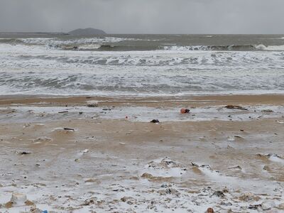 調(diào)研之初,團(tuán)隊(duì)成員于1月22日至1月24日前往了位于山東省威海市火炬高技術(shù)產(chǎn)業(yè)開發(fā)區(qū)的金海灘和位于威海城區(qū)北部的葡萄灘,并對(duì)兩處沙灘垃圾類型、分布等情況進(jìn)行了實(shí)地調(diào)查。兩處沙灘靠近山東大學(xué)威海校區(qū),是平日學(xué)生經(jīng)常光顧之處。通過對(duì)沙灘垃圾分布的觀察,團(tuán)隊(duì)發(fā)現(xiàn)在沙灘垃圾的構(gòu)成中,以人工制品(如塑料、玻璃,破舊漁網(wǎng)等)為主,而腐爛木片等自然產(chǎn)物則占比較小。