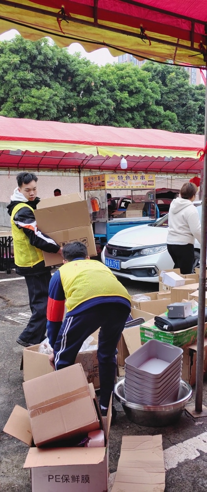 圖為實踐隊員幫助攤主搬運貨物。多彩大學生網通訊員 潘子俊 供圖