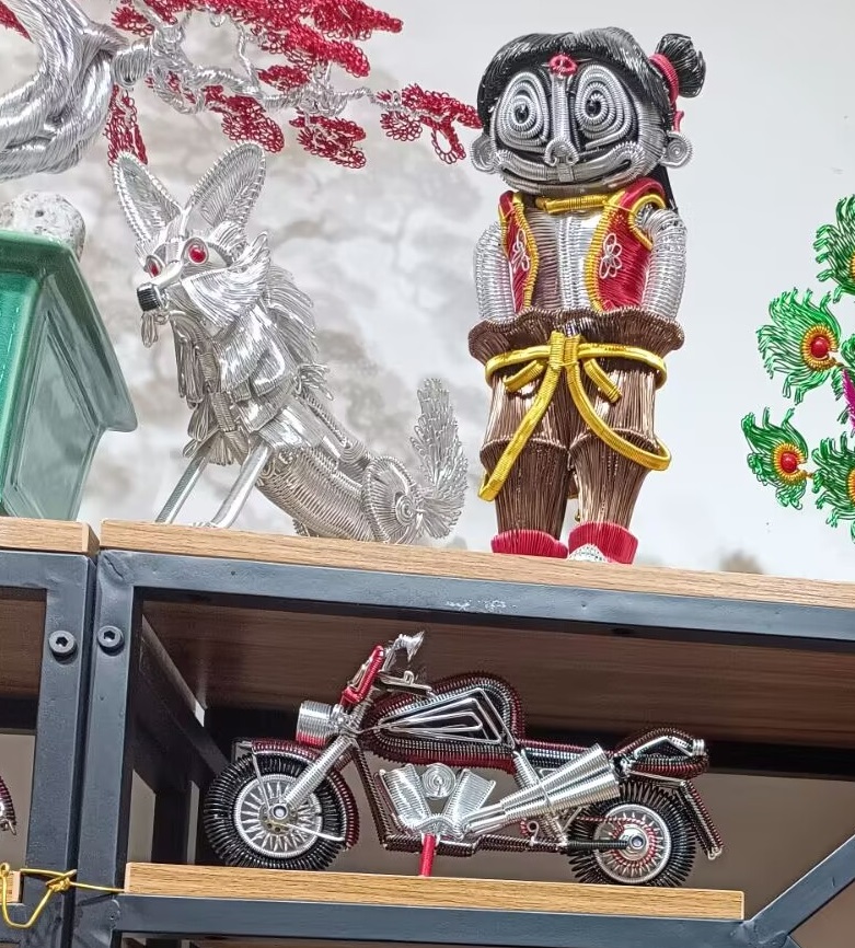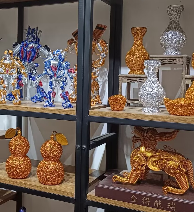 為了更系統、直觀的了解鋁藝的發展歷程,工作人員向實踐隊員展示了近幾年新融入的元素與形象。這里有西方文化中的變形金剛、蜘蛛俠,還有現代中國流行形象“魔童”哪吒。不僅如此,店長還展示了其傳播途徑的創新,這些工藝人給實踐隊員展示直播介紹鋁藝非文化遺產。實踐隊員參與利用短視頻宣傳藝術品。據店員介紹,近幾年鋁藝在傳承與創新方面取得了顯著的成果。店長介紹道,為了保證鋁藝技藝得以傳承,各地文化藝術機構和職業學校開展了相關的教育和培訓課程,培養新一代的鋁藝工作者。